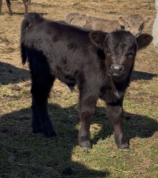 This sharp-looking Mini Dunn Highland bull/steer calf is packed with character—featuring a beautiful dunn coat and that thick, fuzzy Highland hair everyone loves. He’s already showing a curious, easygoing personality that makes him enjoyable to be around and promising to work with.