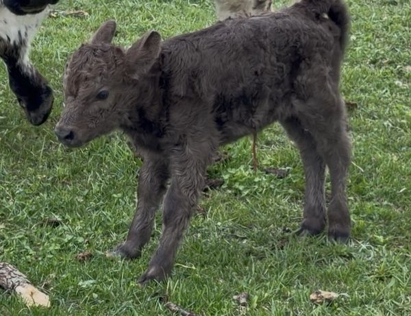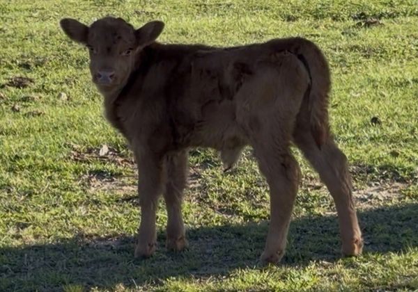 Tiny but mighty, Flame is a Chondro positive micro mini Red Highland bull calf with a fiery spirit and an irresistibly fluffy coat to match! His deep red coloring, confident stance, and sweet pink nose make him a standout among calves—and he’s already living up to his name with a spark of spunk and personality that lights up the pasture.